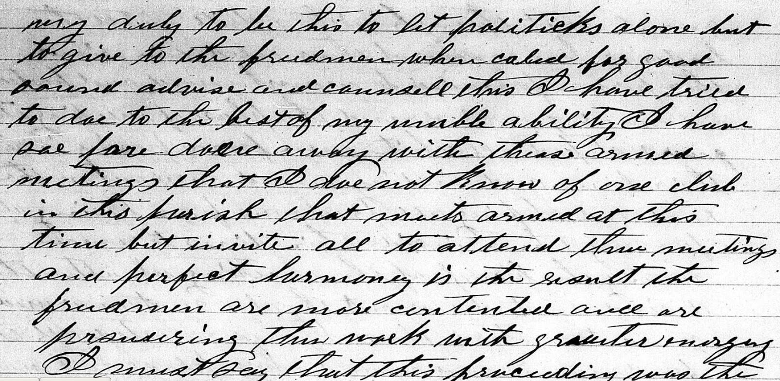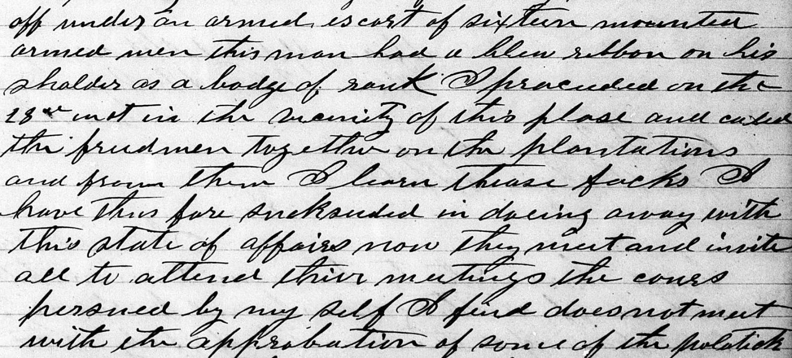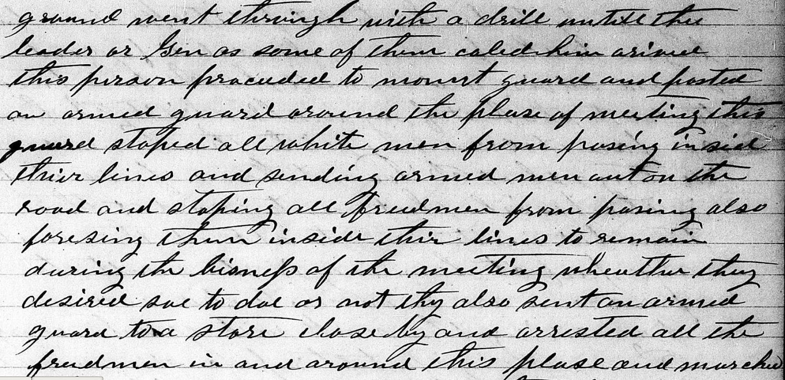 On July 27, 1867, local white citizens were alarmed over a certain “assembly of the Negroes” in the community. This event which took place every morning, appeared to include some kind of “militarized” exercise causing the local white citizens great fear that they may be in danger.