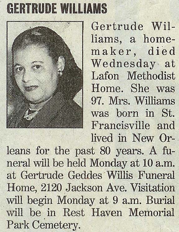 | Obituary for Gertrude Williams |